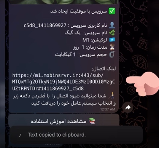 2. لینک اشتراک وی پی ان رو داخل ربات لمس کنین که کپی شه