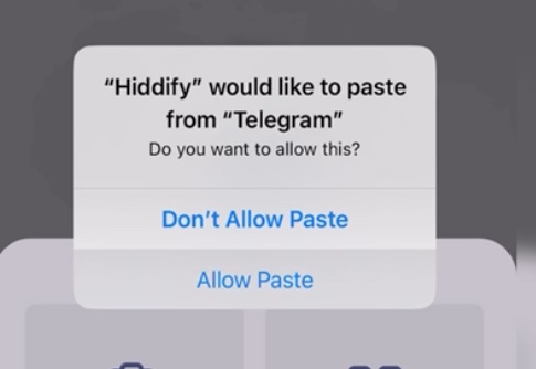 ۱- بعد از نصب هیدیفای لینک اشتراک رو از داخل ربات لمس کنید تا کپی بشه